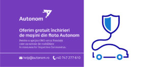 În echipa Autonom am decis să dăm tot ce avem mai bun pentru cei din jurul nostru și pentru binele comun. Prin urmare, ne dorim să punem la dispoziție pentru închiriere gratuită (timp de 3 luni cu posibilitatea de prelungire), mașini din flota Autonom din toată țara, pentru acele ONG-uri și fundații care au nevoie de mobilitate în misiunea lor.